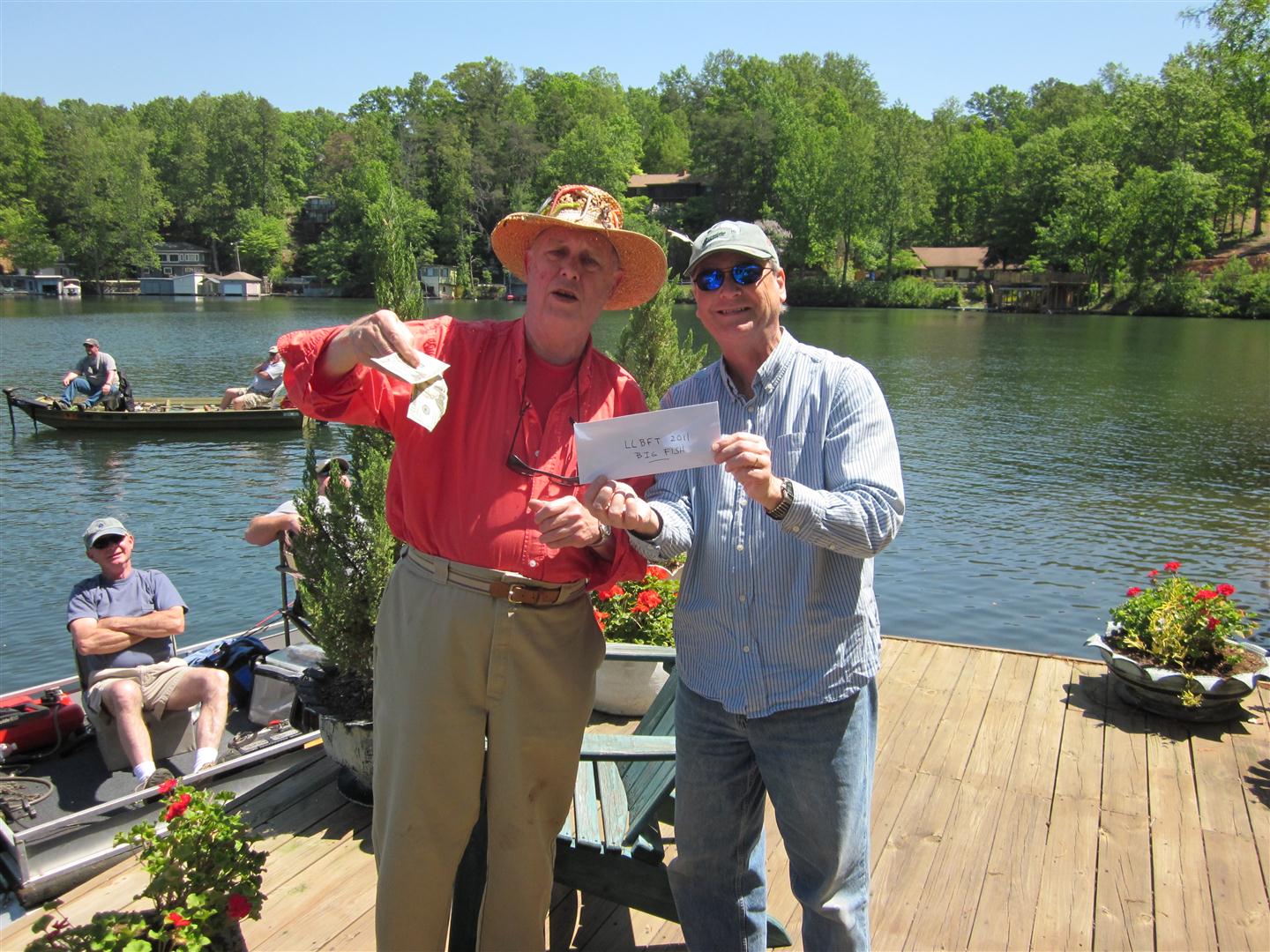 As Noon approached, I had decided to refund everyone’s entry fee if no fish were brought in. Bill Jones had caught a 2 pound 2 ounce Bass about twenty feet from my dock as Linda watched. Dan Jones netted the winning Big Fish, they took home $40. Bruce Carlson and Joe Tomko landed a 1 Pound 8 ounce Bass, it combined with another Bass took home the heavy stringer at 2 pounds 10 ounces for $25. Fisherman Bob Jutzi and Tennessee Mike Wiley had two bass tipping the scales at 2 pounds 1 ounce. These were the only five fish brought to the weigh in, although at least 100 fish were hooked and released.